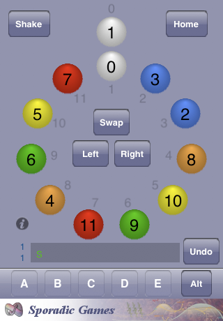 M12 will make a random puzzle for you to solve if you shake your iPhone or iPod, or if you hit the Shake button.