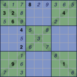 Fill in the 9x9 grid so that the digits 1 - 9 appear only once in each row, column and group (sometimes called box.) To illustrate this we've blanked out most of the puzzle to the left. |